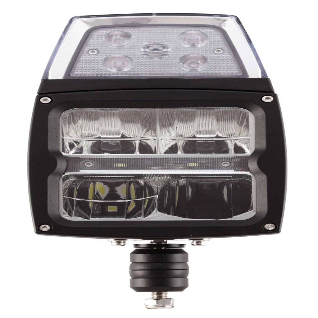 Robustní konstrukce z hliníku a tvrzeného skla spolu s krytím IP68 chrání světlomet před vodou, prachem, solí a vibracemi. Díky kompaktním rozměrům a montážnímu držáku je instalace jednoduchá a vhodná pro různé typy pracovních vozidel.