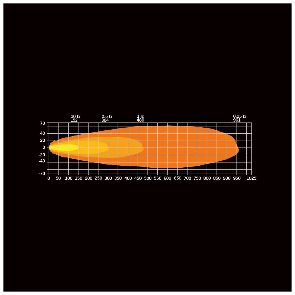 Profesionální přídavné dálkové světlo s reálným světelným tokem 13 500 lm, dosvitem (1 lux) 480 m a optimalizovaným světelným kuželem. Barevná teplota 5000 K, dvojité poziční světlo v bílé a jantarové barvě, napětí 10–36 V a odolnost IP68 / IP69K. Referenční číslo 45.