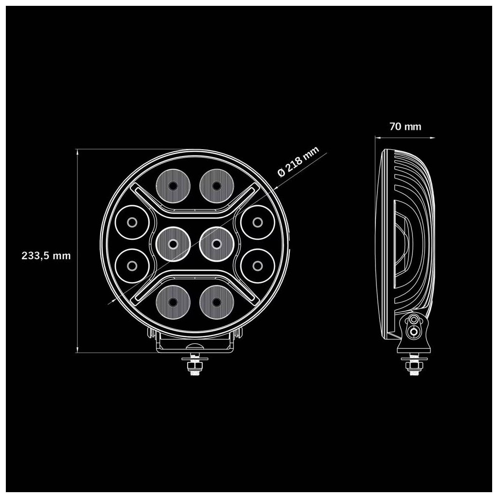 Dark Knight Intense 9" je určen pro nákladní vozidla, dodávky, servisní vozy a pracovní techniku, kde je vyžadována vysoká svítivost, dlouhý dosvit a plná homologace pro silniční provoz. Díky optimalizovanému světelnému kuželu poskytuje rovnoměrné pokrytí vozovky bez ztráty dosvitu do dálky.