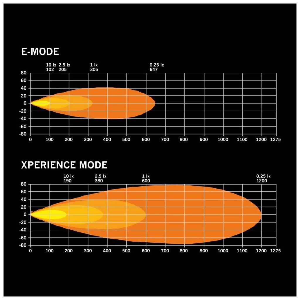 E-mode je homologován dle ECE R148/R149 s referenčním číslem 20, což je důležité pro legální provoz v mnoha evropských zemích. Xperience režim poskytuje maximální výkon a prodloužený dosvit.