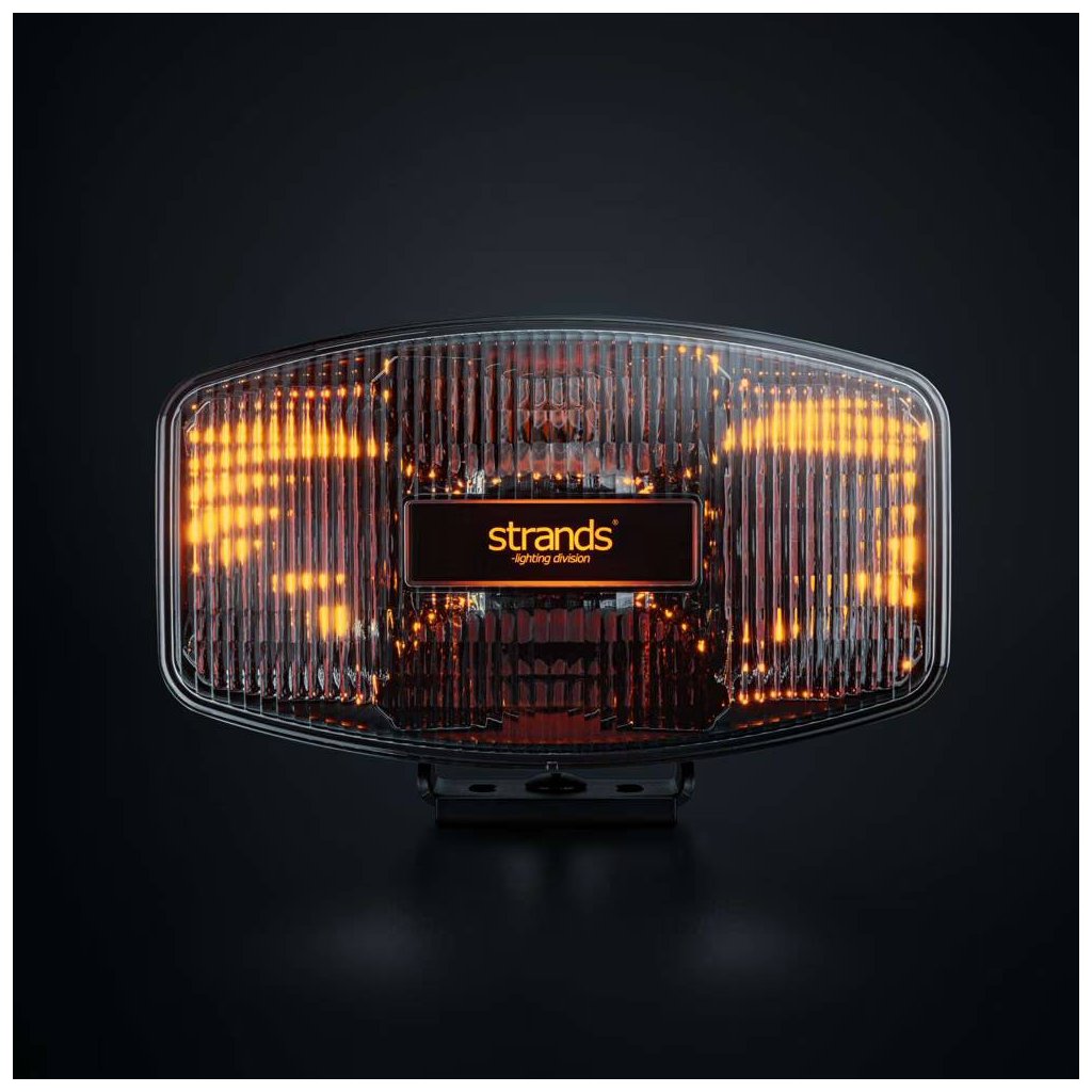 Poziční světla v teplé bílé nebo jantarové barvě vytvářejí charakteristický světelný efekt v reflektoru a zároveň zvýrazňují logo Strands v čočce.