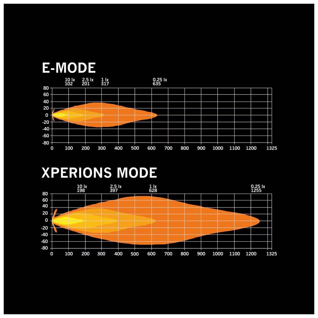 Kompaktní přídavné dálkové světlo s reálným světelným tokem 5 850 lm, dosvitem (1 lux) 628 m a dvěma režimy svícení – E-approved režim a Xperience režim. Dvojité poziční světlo v bílé a jantarové barvě, napětí 10–40 V a odolnost IP68 / IP69K. Referenční číslo 25.