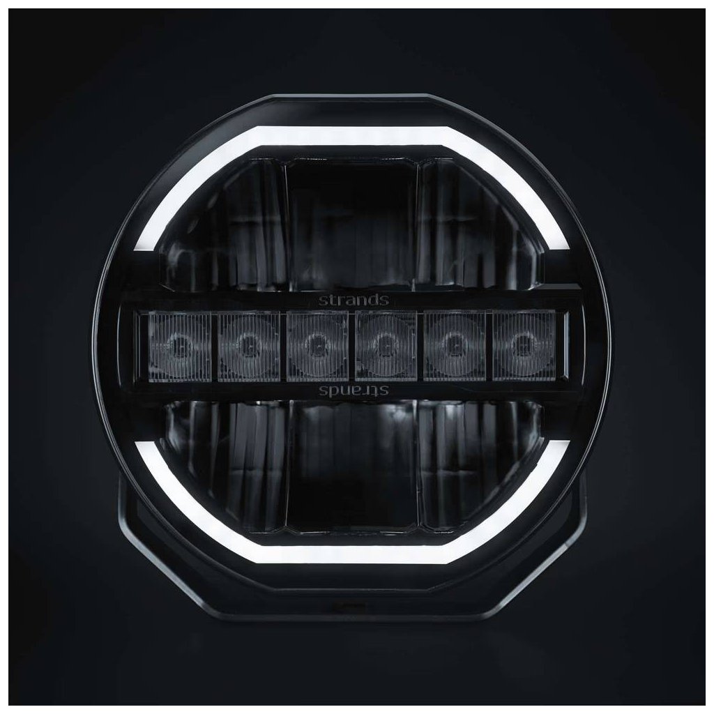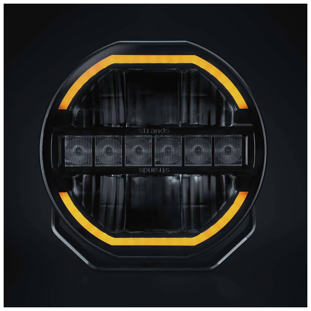 Výkonné přídavné dálkové světlo Strands Siberia Skylord 9" se skutečným světelným tokem 7 025 lm, dosvitem (1 lux) 744 m a dvěma režimy svícení: E-approved režim a Xperience režim. Dvojité poziční světlo (bílé/jantarové), napětí 10–40 V, odolnost IP68 / IP69K, referenční číslo 25.