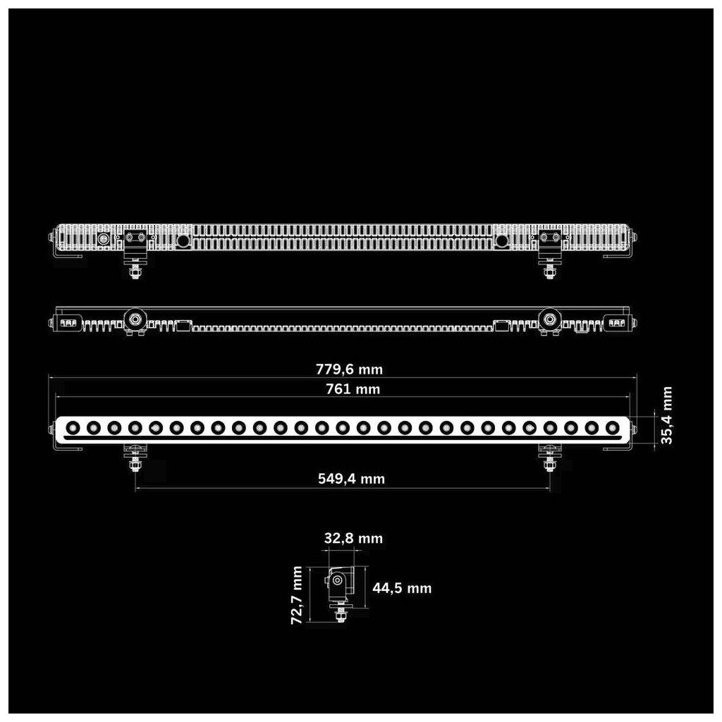 Moderní design s černým tělem a tmavou čočkou dokonale zapadá do vzhledu současných vozidel. LED rampa je velmi kompaktní – má pouze 3,3 cm hloubku a 4,5 cm výšku včetně držáku, takže ji lze instalovat i do velmi úzkých prostor.