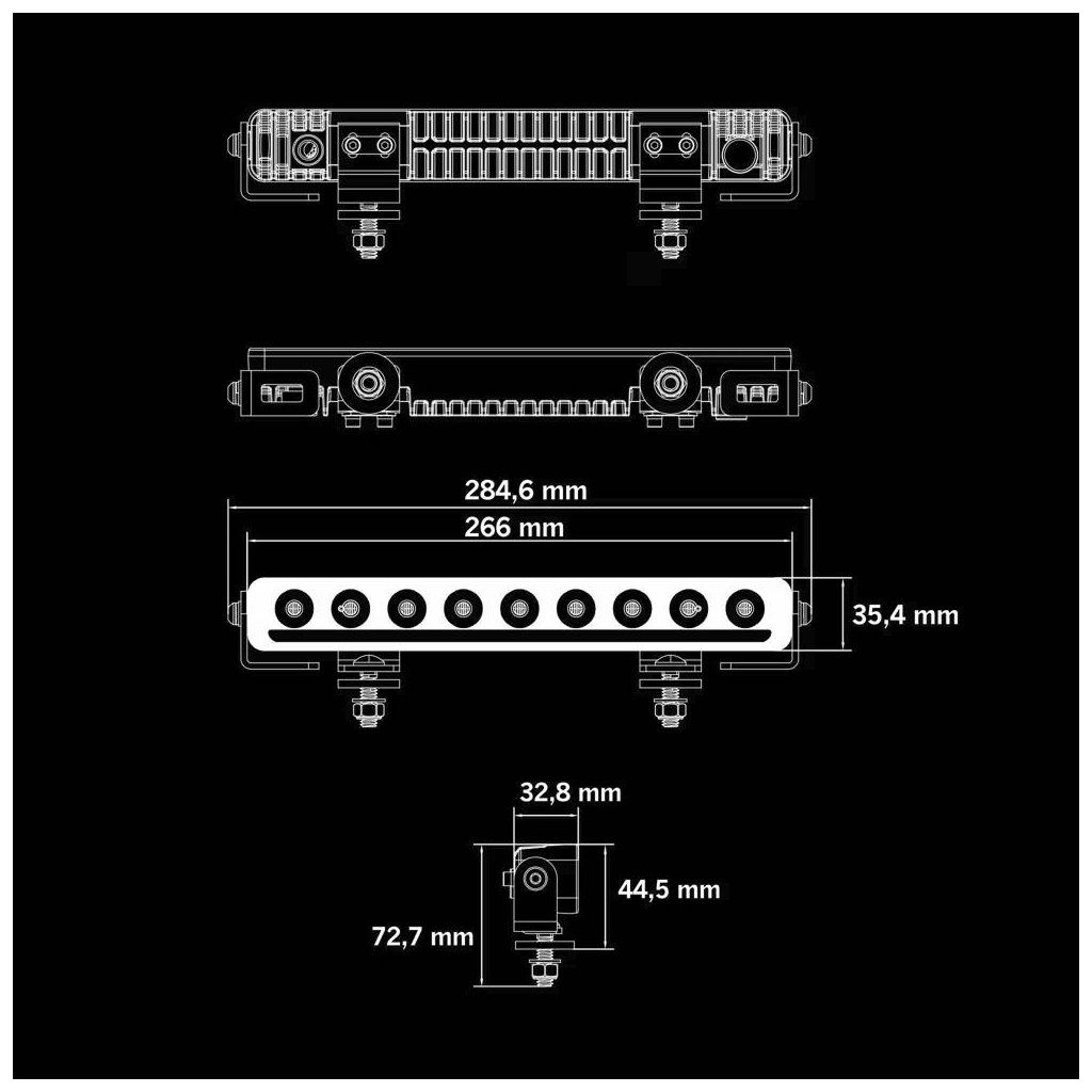 Moderní design s černým tělem a tmavou čočkou přirozeně zapadá do vzhledu současných vozidel. LED rampa má velmi nízký profil – pouze 3,3 cm hloubku a 4,5 cm výšku včetně držáku, takže ji lze instalovat i do velmi úzkých prostor.
