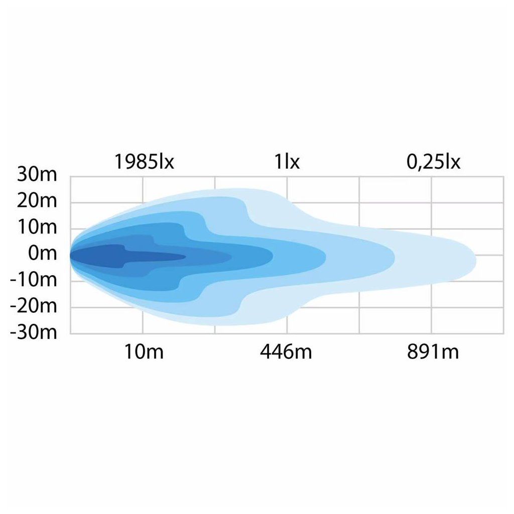 Díky optimalizovanému světelnému kuželu poskytuje dosvit až 446 metrů a zároveň dostatečnou šířku osvětlení. Světlo je navrženo tak, aby zajistilo maximální viditelnost při práci na silnici nebo v náročném prostředí.