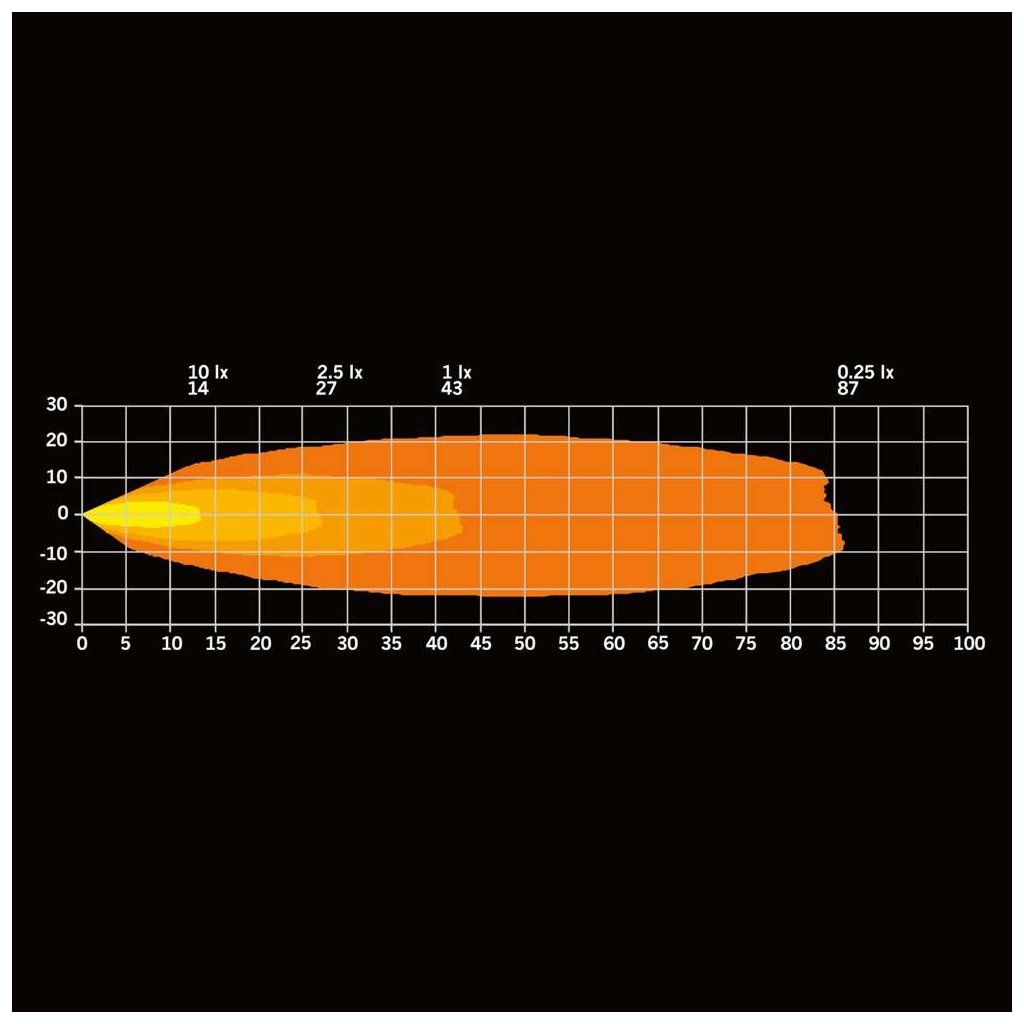 Široký světelný kužel s úhlem 80,2° zajišťuje rovnoměrné osvětlení bez tmavých míst. Ideální je pro práci kolem vozidla, manipulaci nebo osvětlení pracovních ploch, kde je důležitý přehled.